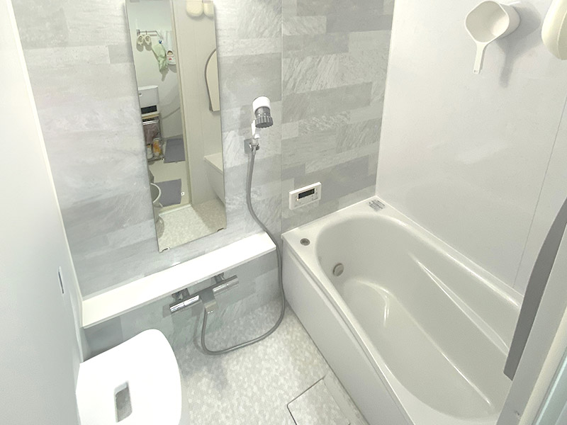 ・グレー系アクセントパネルにより落ち着いた雰囲気のバスルームへ生まれ変わりました。